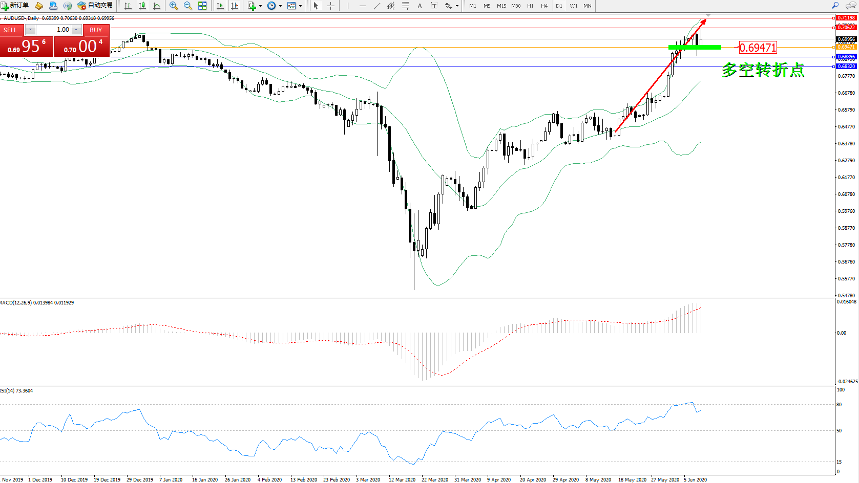 交易策略:0.69471上方看涨,目标0.706220.71198