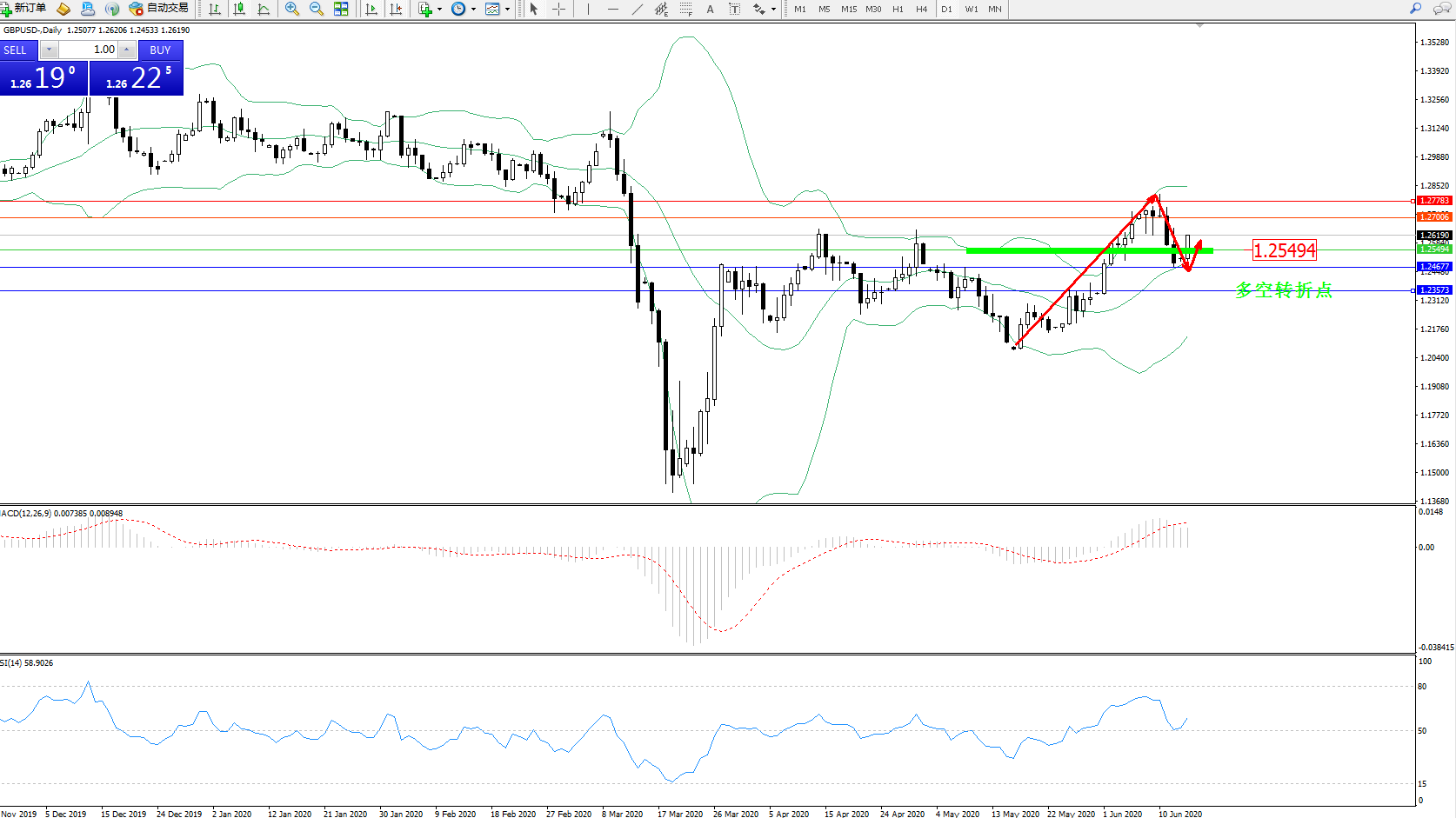 交易策略:1.25494上方看涨,目标1.270061.27783