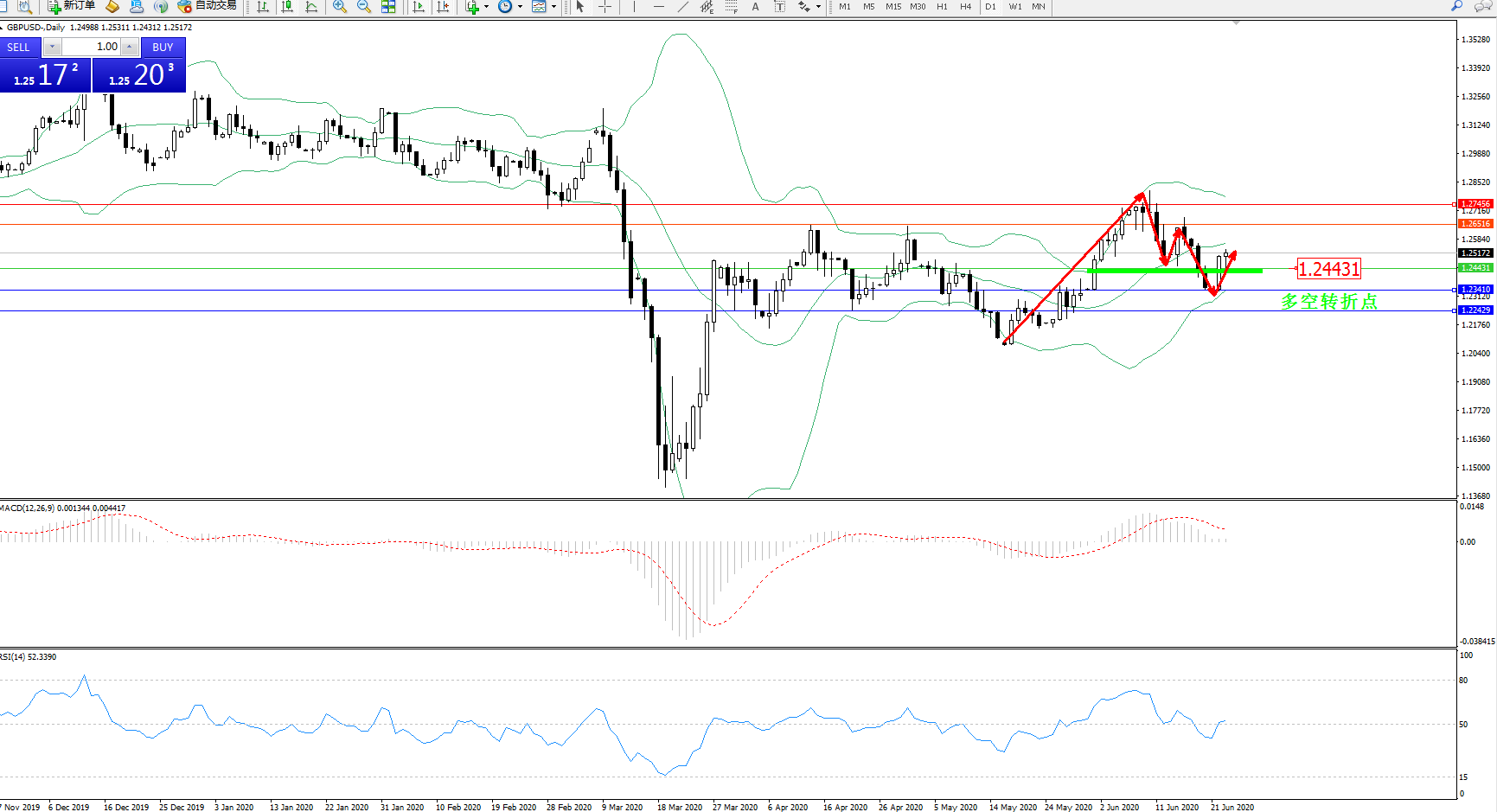 交易策略:1.24431上方看涨,目标1.265161.27456