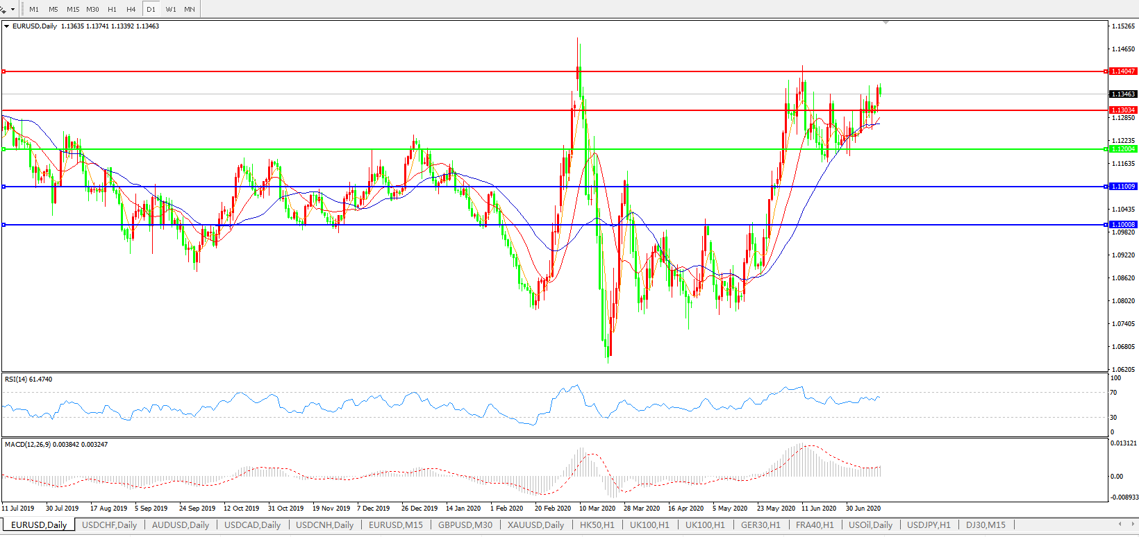 交易策略:1.1200上方看涨,目标1.1300、1.1400
