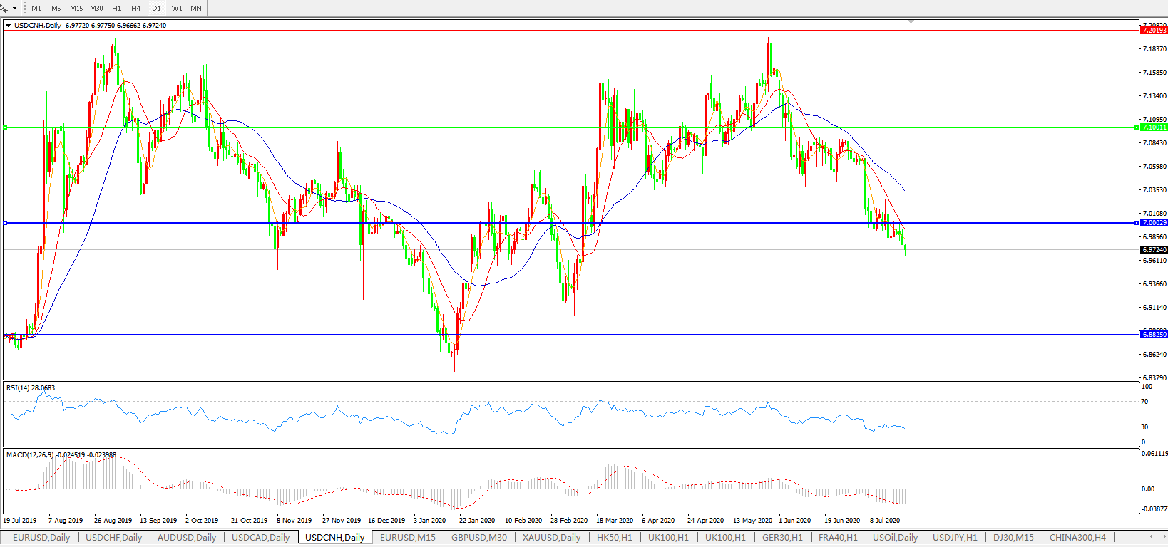 交易策略: 在7.1000之下,看跌,目标价位为7.0000,然后为6.8820。