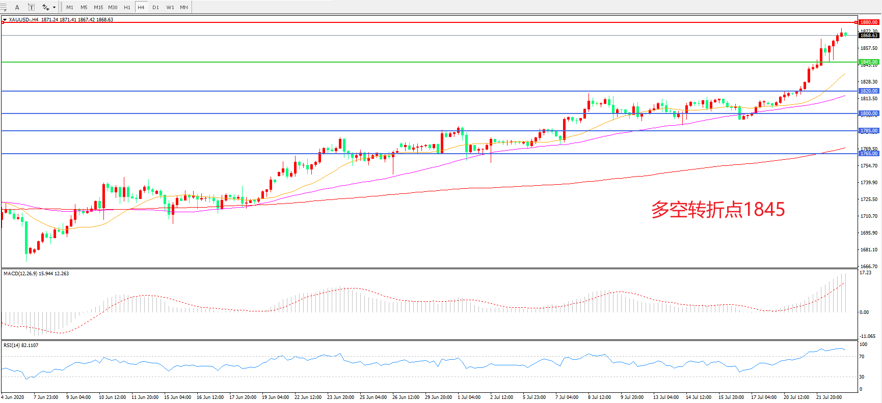 交易策略:在1845.00之上看涨,目标1880.00   1920.00