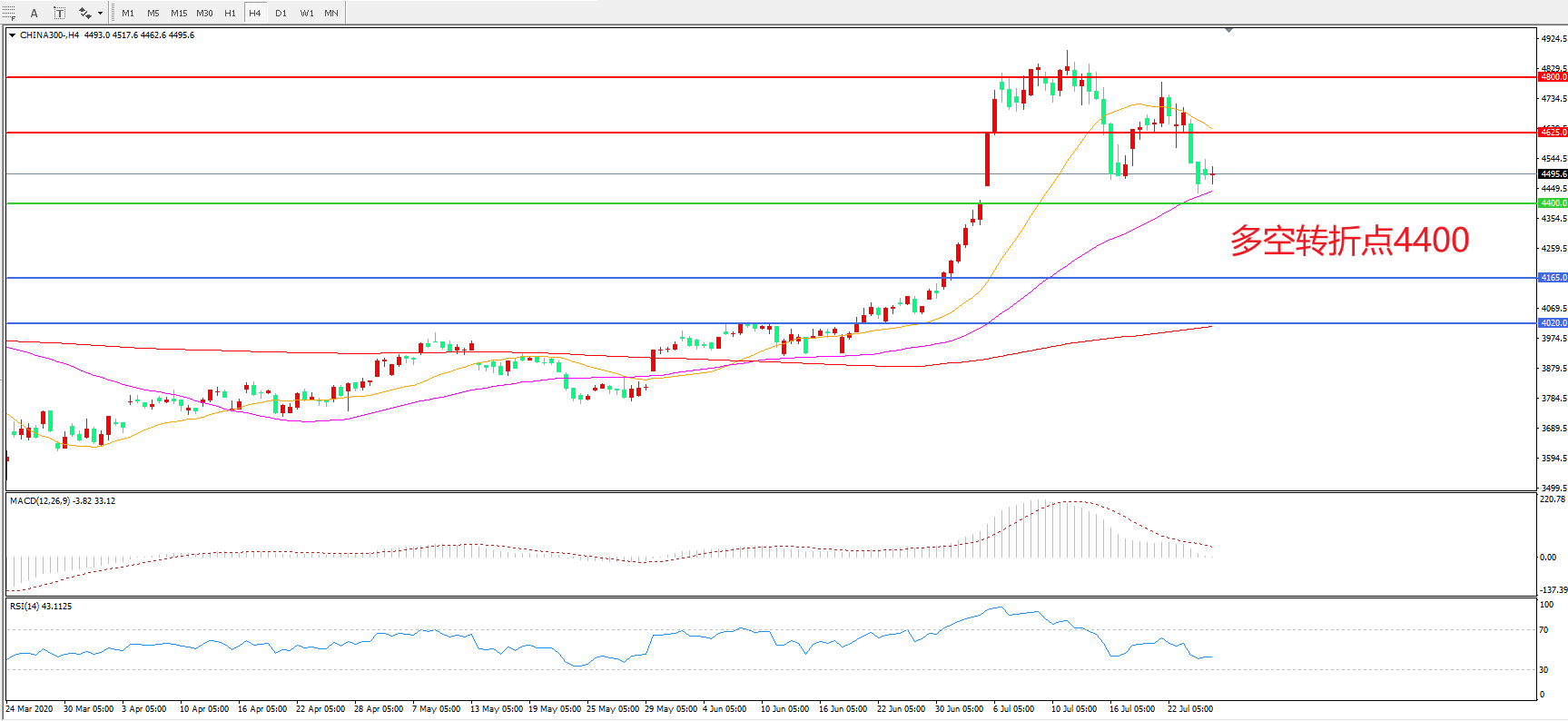 备选策略:在4400.00之下看跌,目标4165.00       4020.00