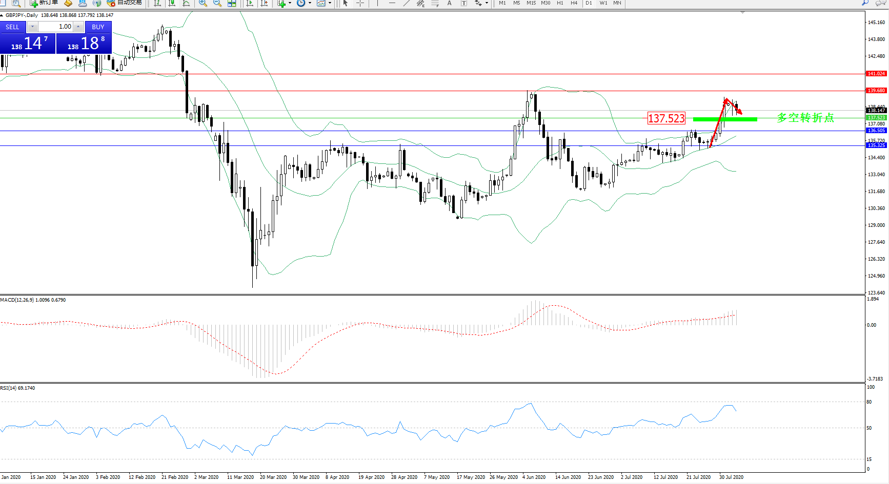 交易策略:137.523上方看涨,目标139.680、141.024