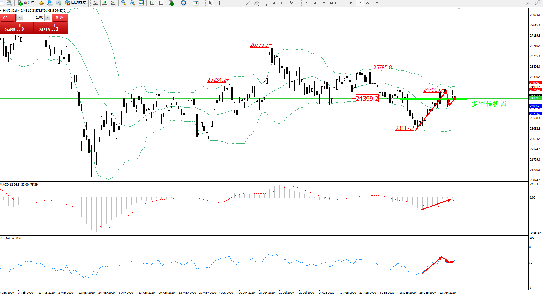 恒指HK50 ——日K线图显示: