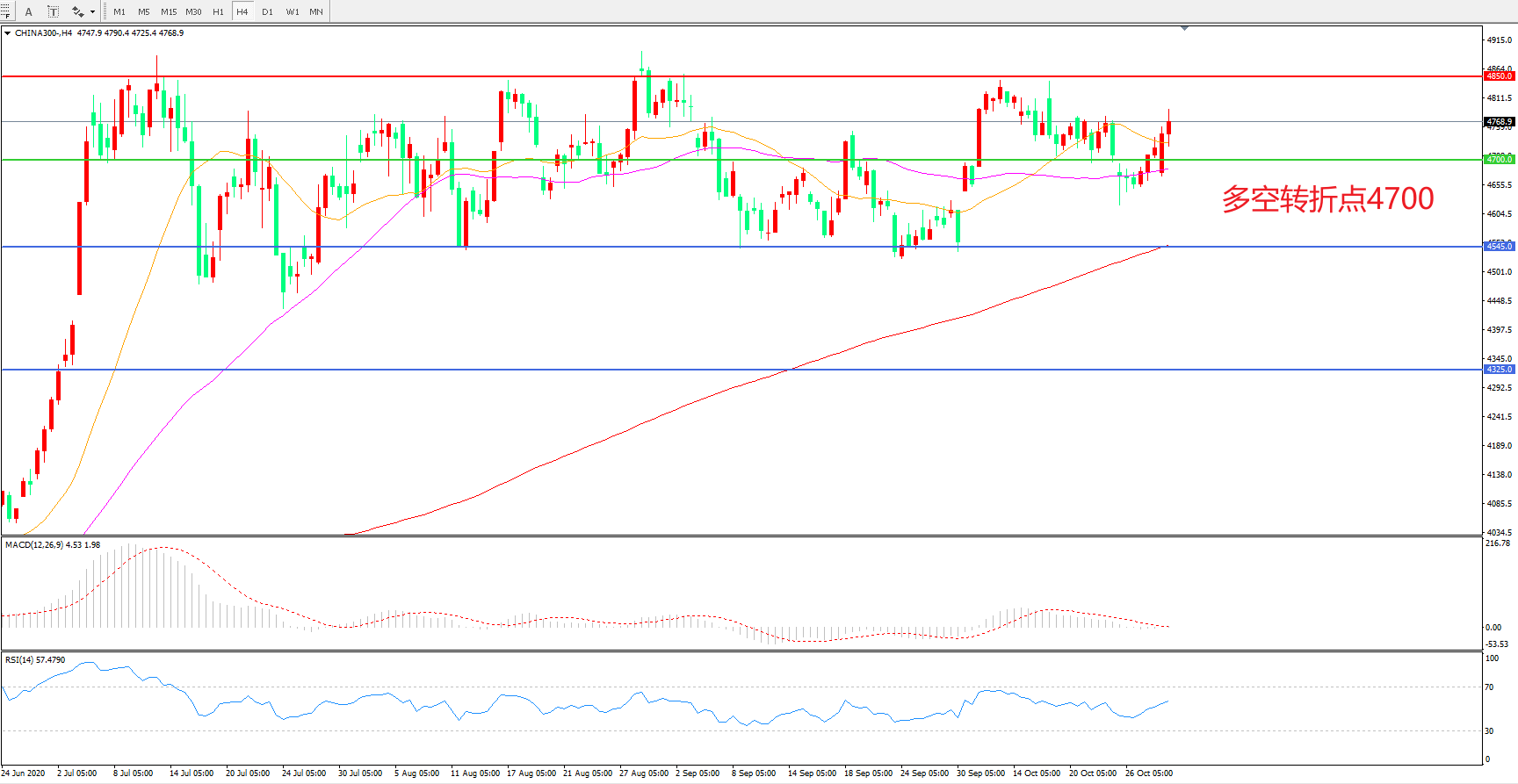 多空转折点:4700.00