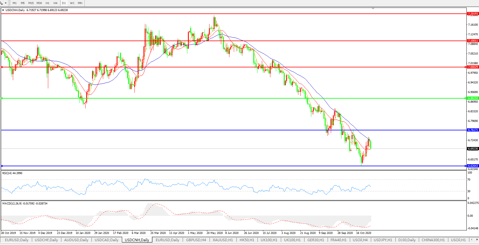 美元兑人民币USDCNH    日线图: