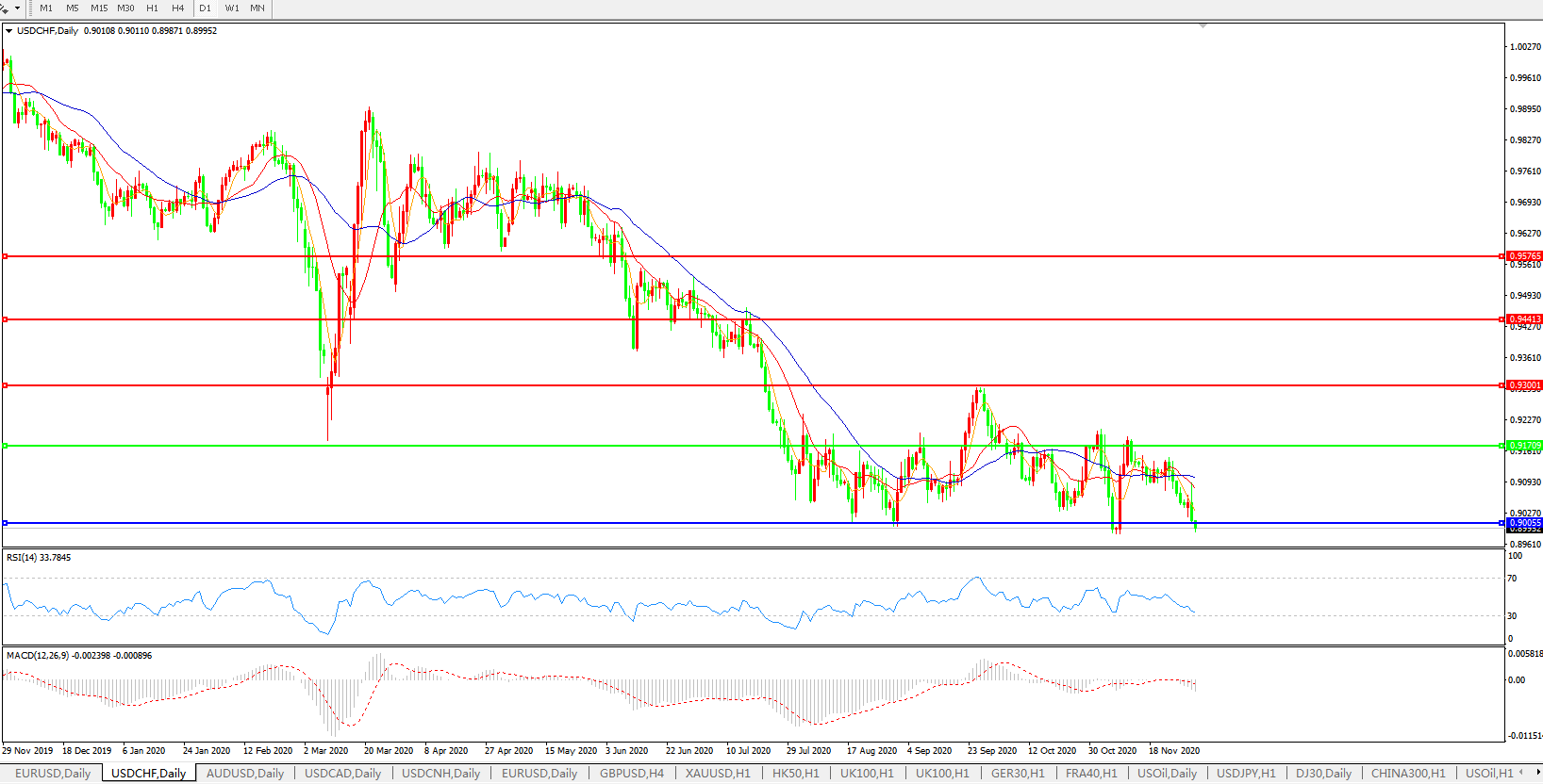 美元兑瑞郎USDCHF 日线图: