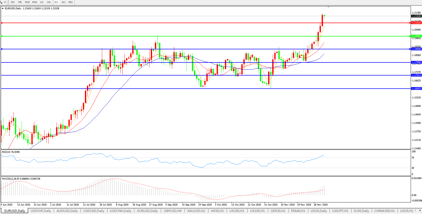 欧元兑美元EURUSD 日线图: