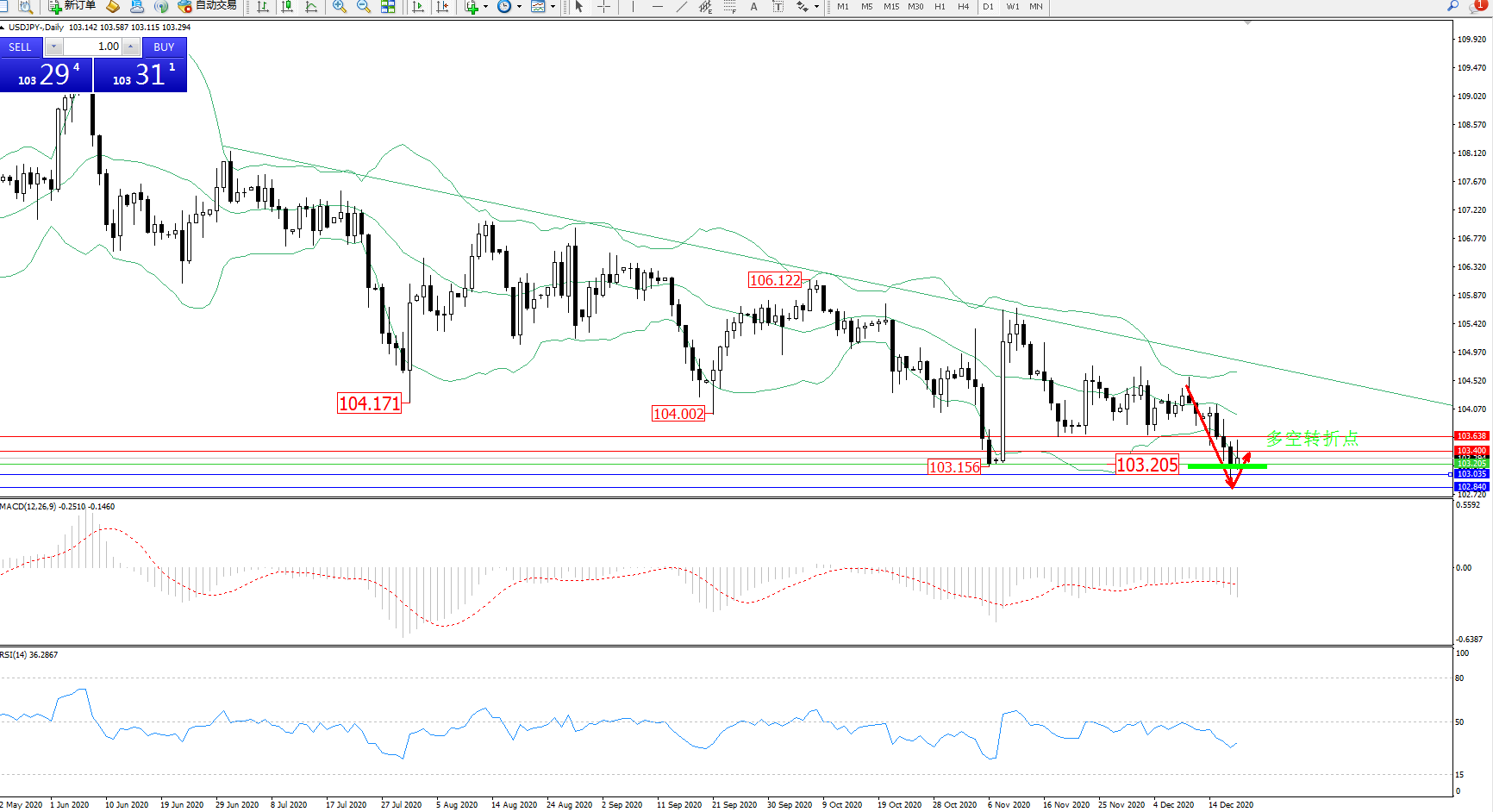 多空转折点:103.205