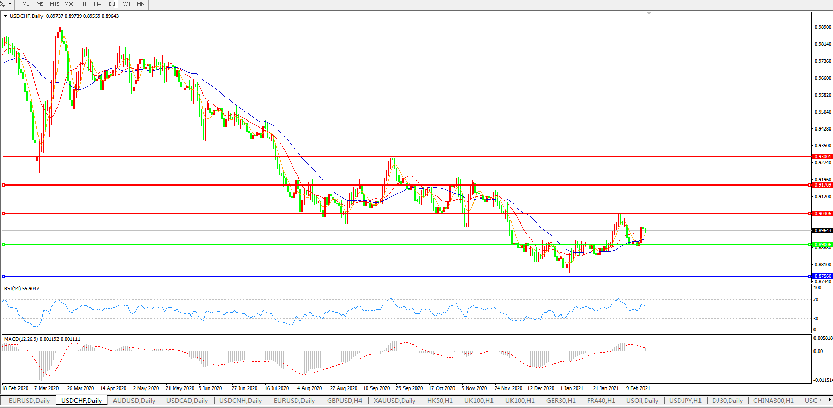 美元兑瑞郎USDCHF 日线图: