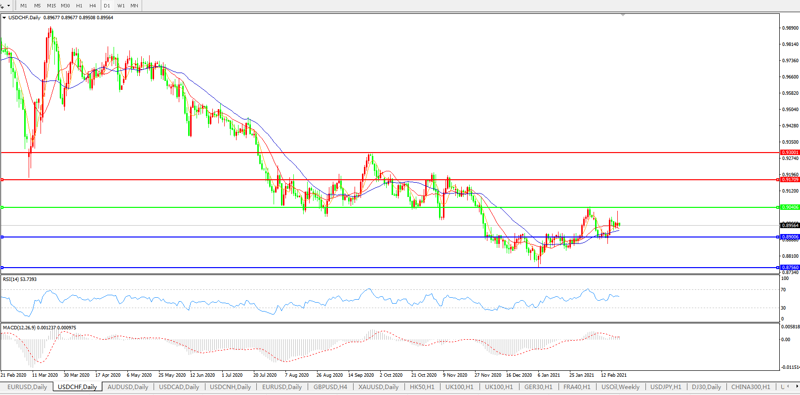 美元兑瑞郎USDCHF 日线图: