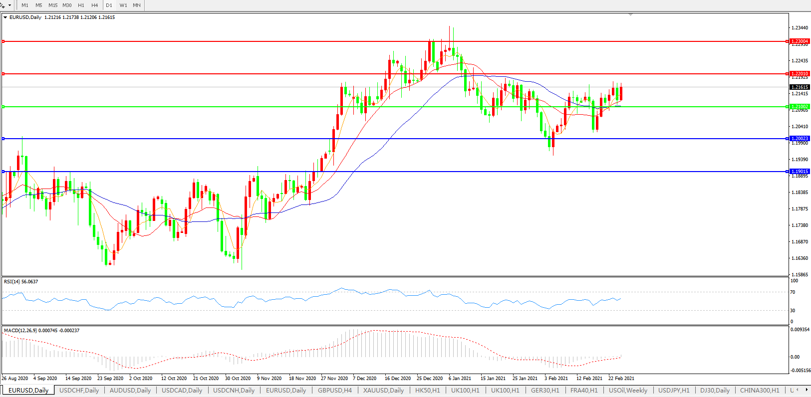 欧元兑美元EURUSD 日线图: