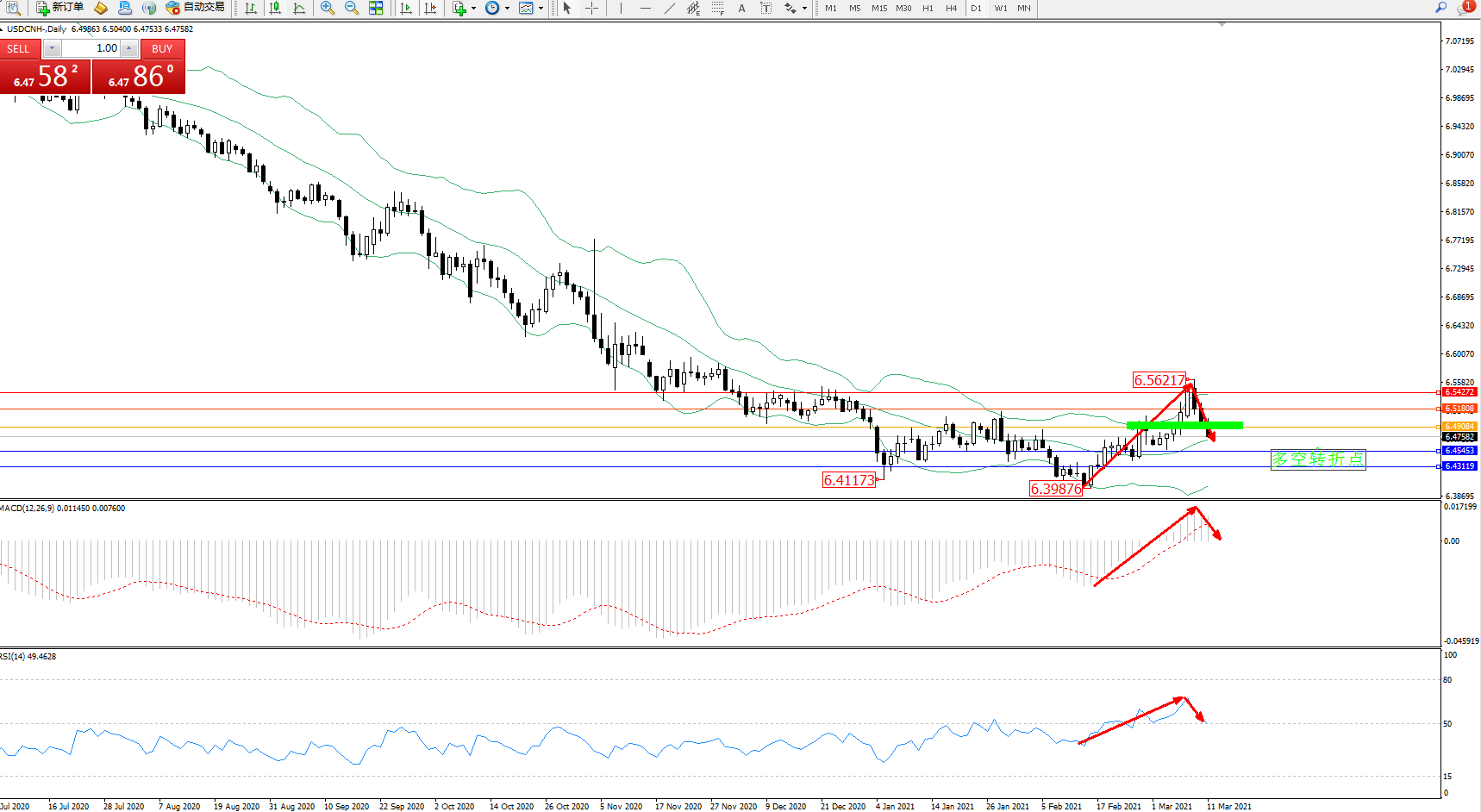 备选策略:6.49084上方看涨,目标6.51808、6.54272