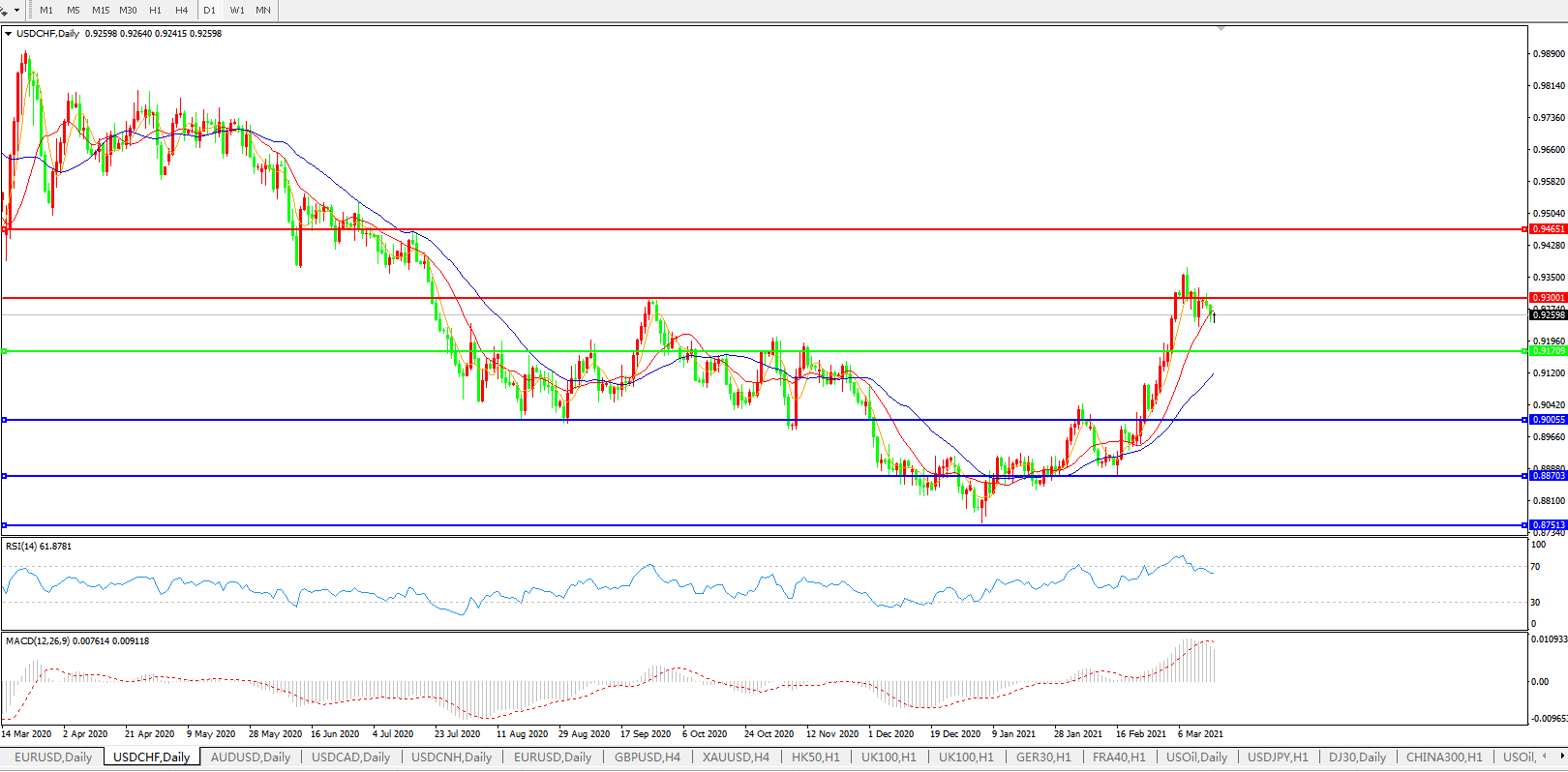 美元兑瑞郎USDCHF    日线图: