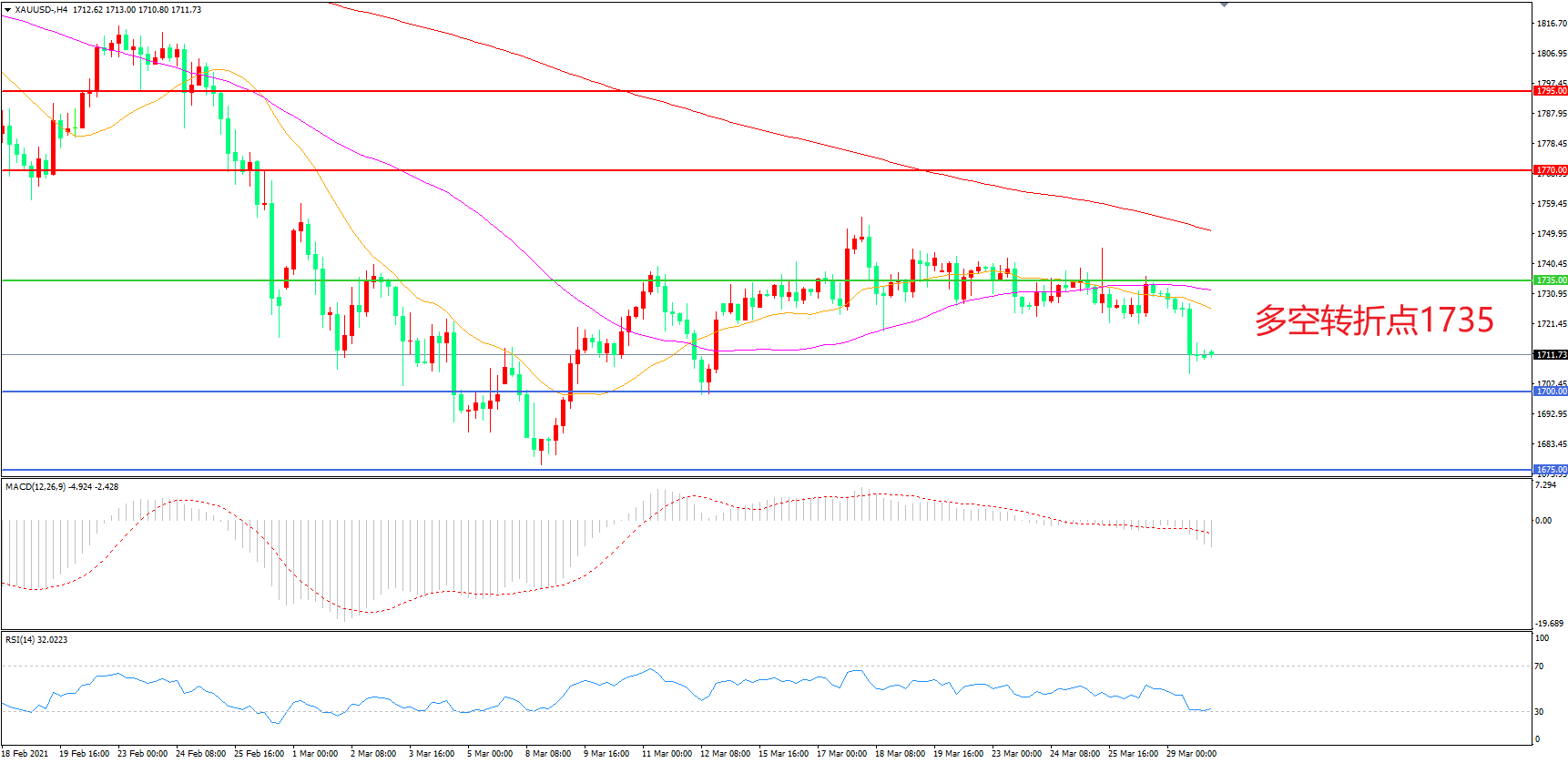 多空转折点:1735.00