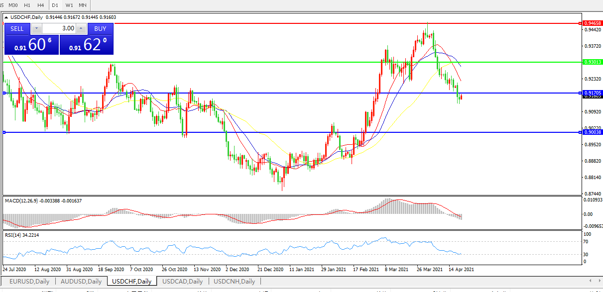 美元兑瑞郎USDCHF    日线图: