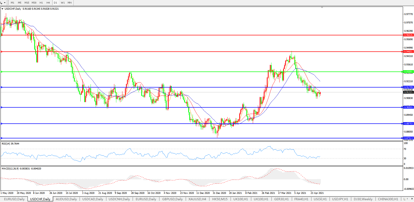 美元兑瑞郎USDCHF    日线图:
