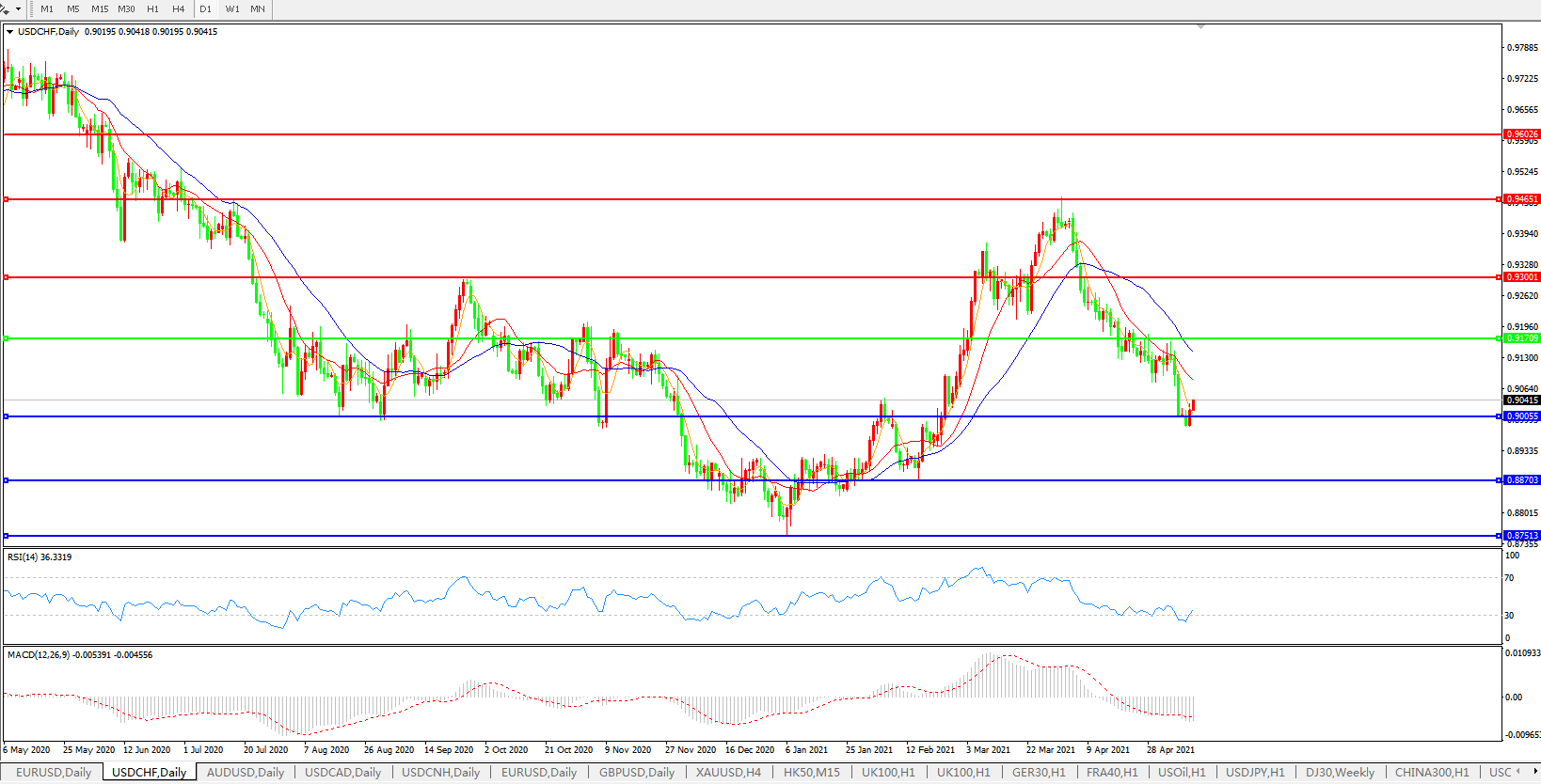 美元兑瑞郎USDCHF    日线图: