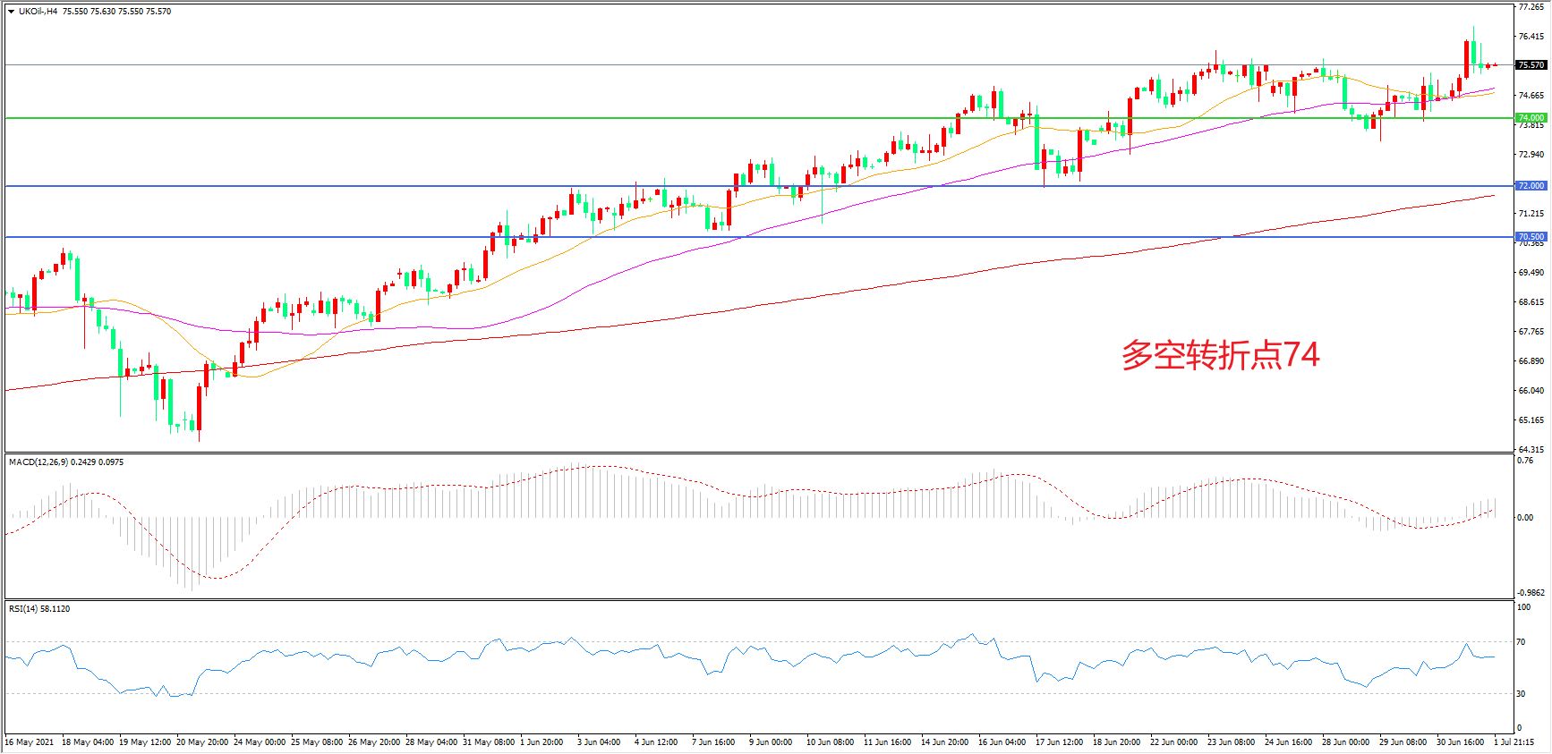 交易策略:在74.00之上看涨,目标77.00 80.00
