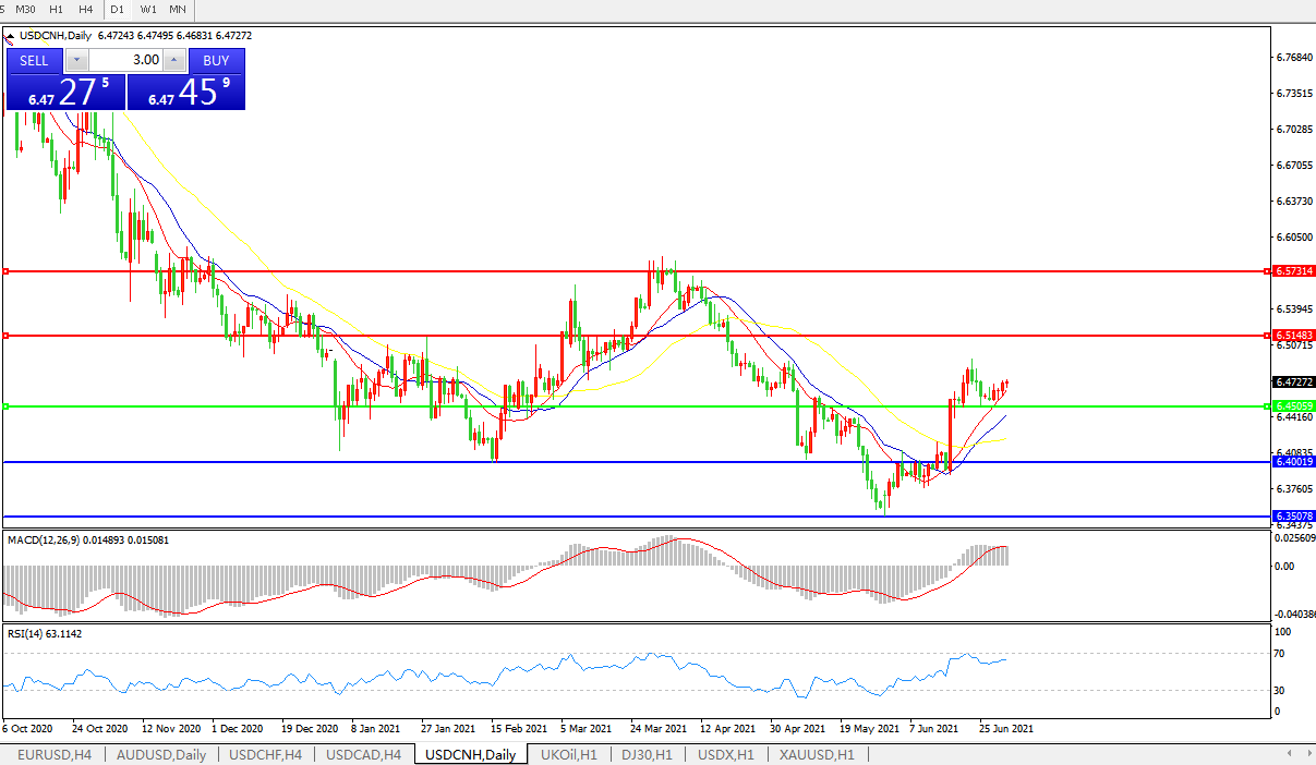 交易策略: 在6.4505之上,看涨,目标价位为6.5150,然后为6.5730。