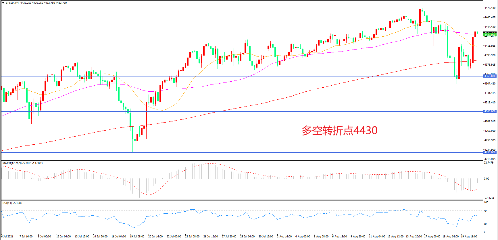 多空转折点:4430.00