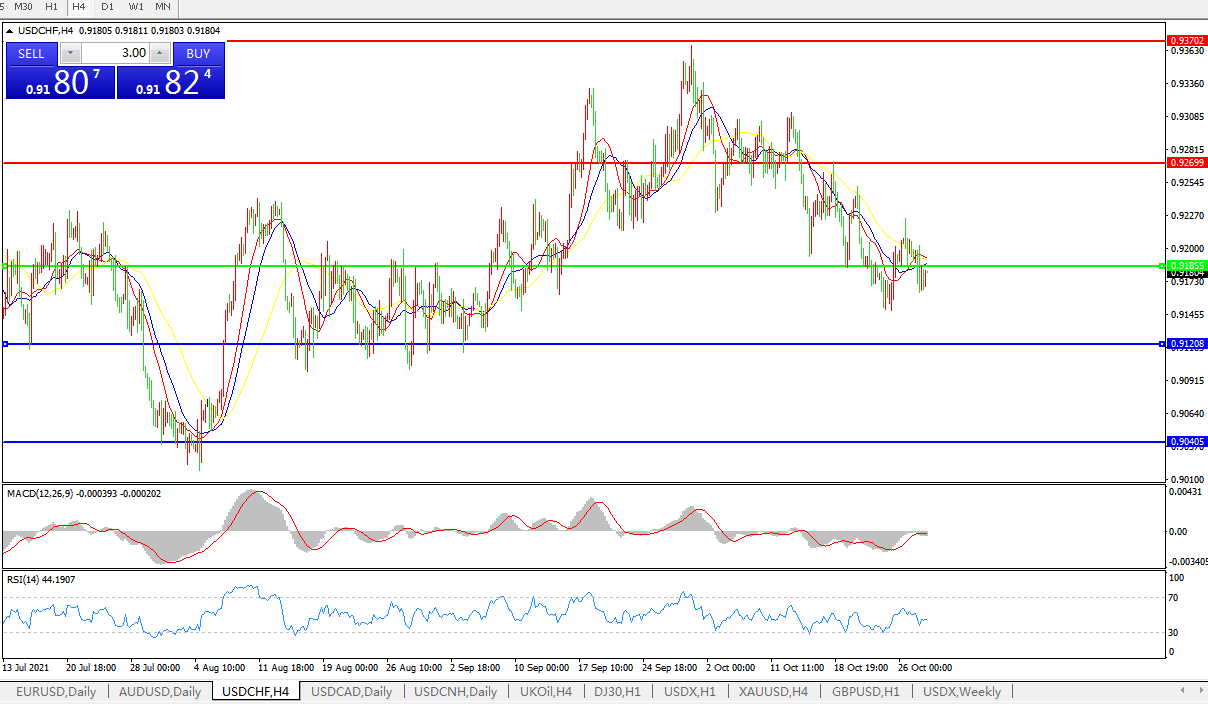 交易策略:0.9180下方看跌,目标0.9120、0.9040