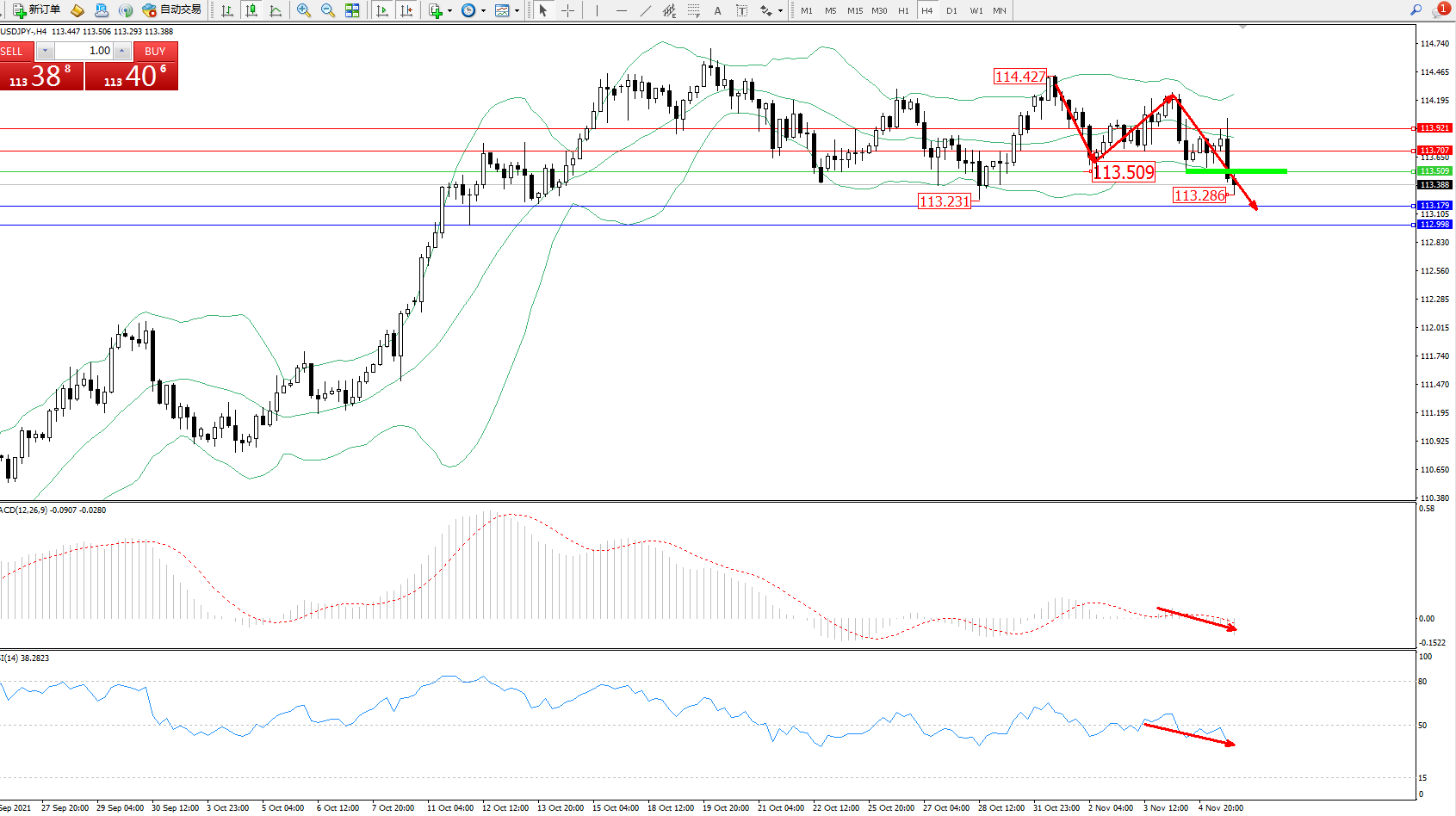 交易策略:113.509下方看跌,目标113.179112.998