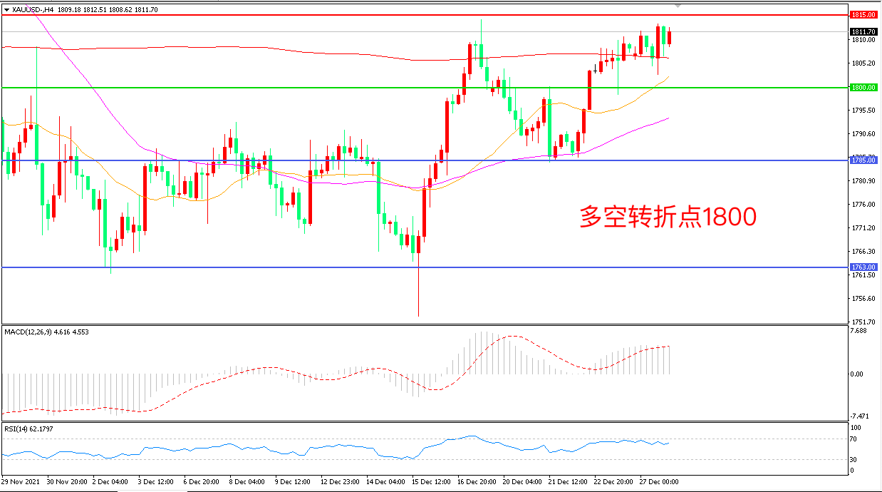 交易策略:在1800.00之上看涨,目标1815.00       1830.00