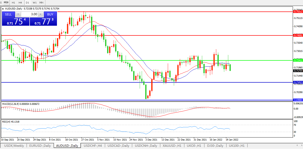 备选策略:0.7240上方看涨,目标0.7400、0.7550