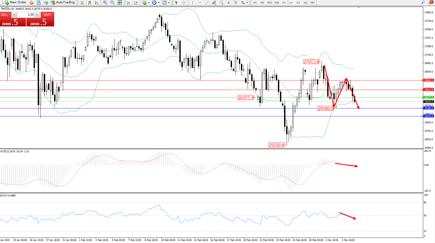 日经225指数3月3日(周四)收盘上涨204.97点,涨幅0.78%,报26598.00点。日本央行委员Nakagawa:密切关注乌克兰局势。乌克兰冲突对贸易的直接影响是有限的,可能需要一段时间才能通过各种渠道衡量乌克兰危机对日本经济的更广泛影响,不断上升的天然气和粮食成本将支撑日本通胀,但如果打击到企业利润、家庭收入,可能会损害日本经济,乌克兰局势可能会经由欧洲对日本经济造成间接影响,日本经济仍在从新冠疫情的打击中复苏,乌克兰局势将通过物价影响全球货币政策,当前货币政策没有必要做大的改变,实现2%的通胀并不是日本央行的唯一目标,我们正在保持宽松的政策,以确保经济获得足够的力量来维持2%的通胀,未来的货币政策决定将取决于乌克兰危机是否会通过各种渠道对经济造成伤害,或者影响是否仍然相当有限,很难想象乌克兰危机、制裁会对日本经济产生怎样的影响,因为这是过去的事情所无法比拟的。
