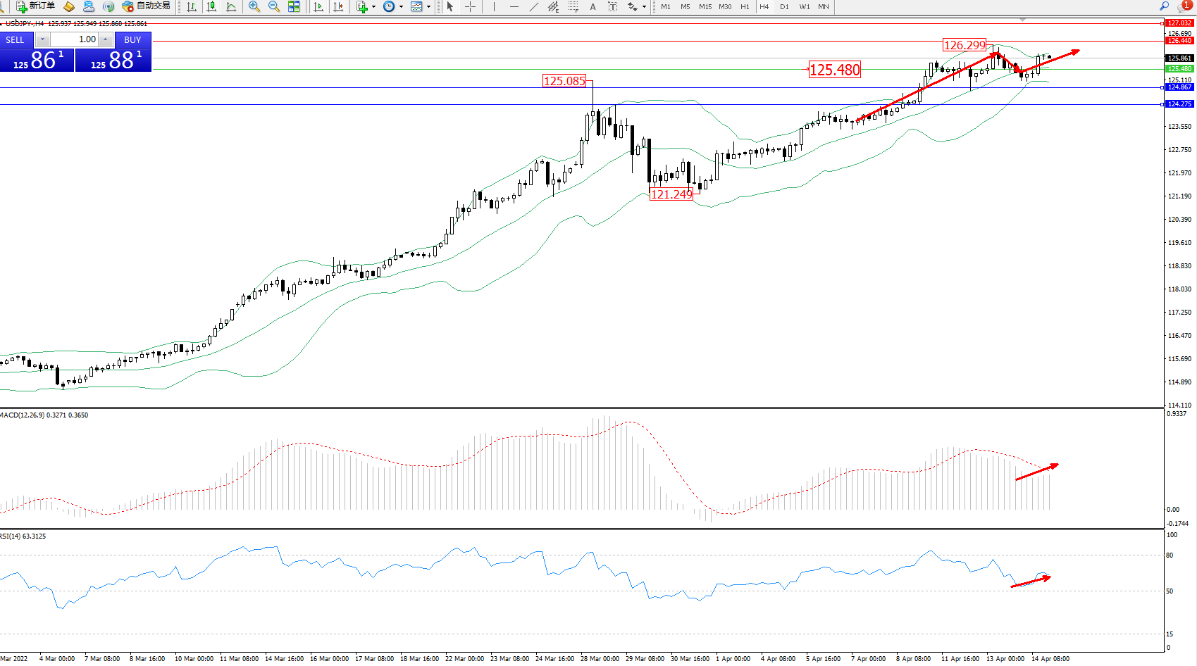交易策略:125.480上方看涨,目标126.440127.032