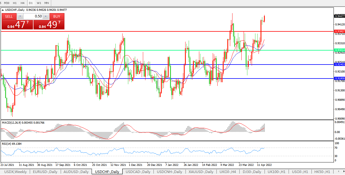 美国债收益率续涨,美元兑瑞郎加速上行