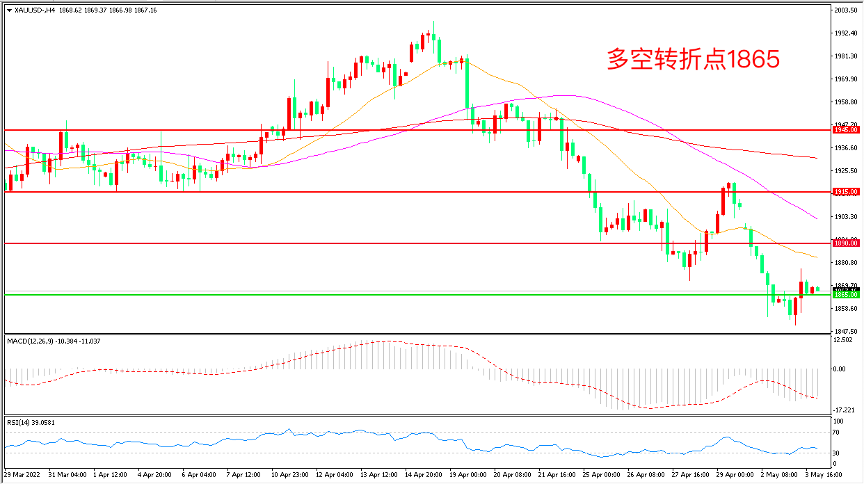交易策略:在1865.00之下看跌,目标1840.00 1810.00