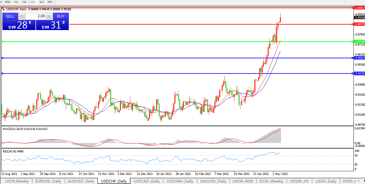 抗击通胀能力遭质疑,美元兑瑞郎继续冲高
