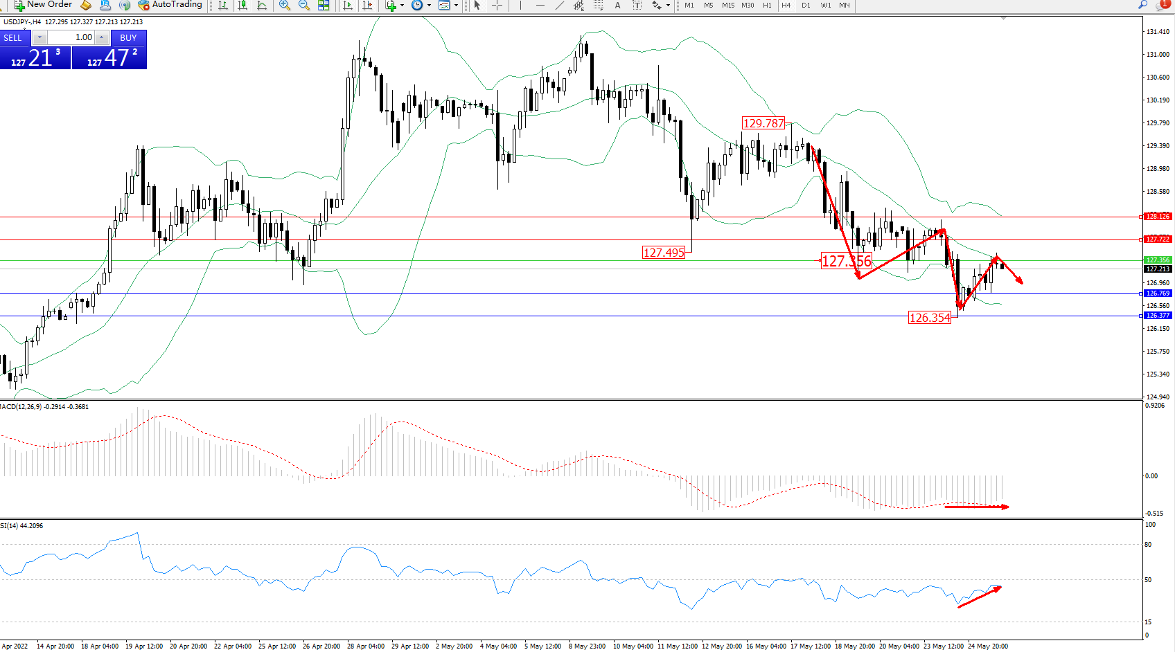交易策略:127.356下方看跌,目标126.769、126.377