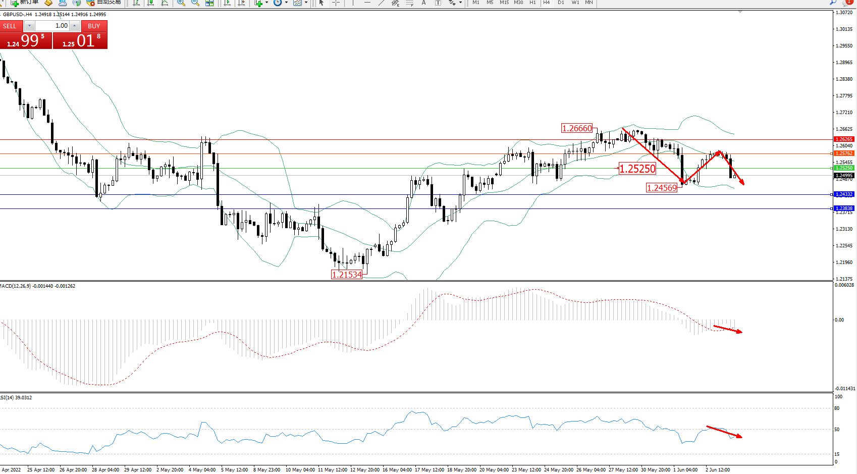 交易策略:1.25250下方看跌,目标1.24332、1.23838