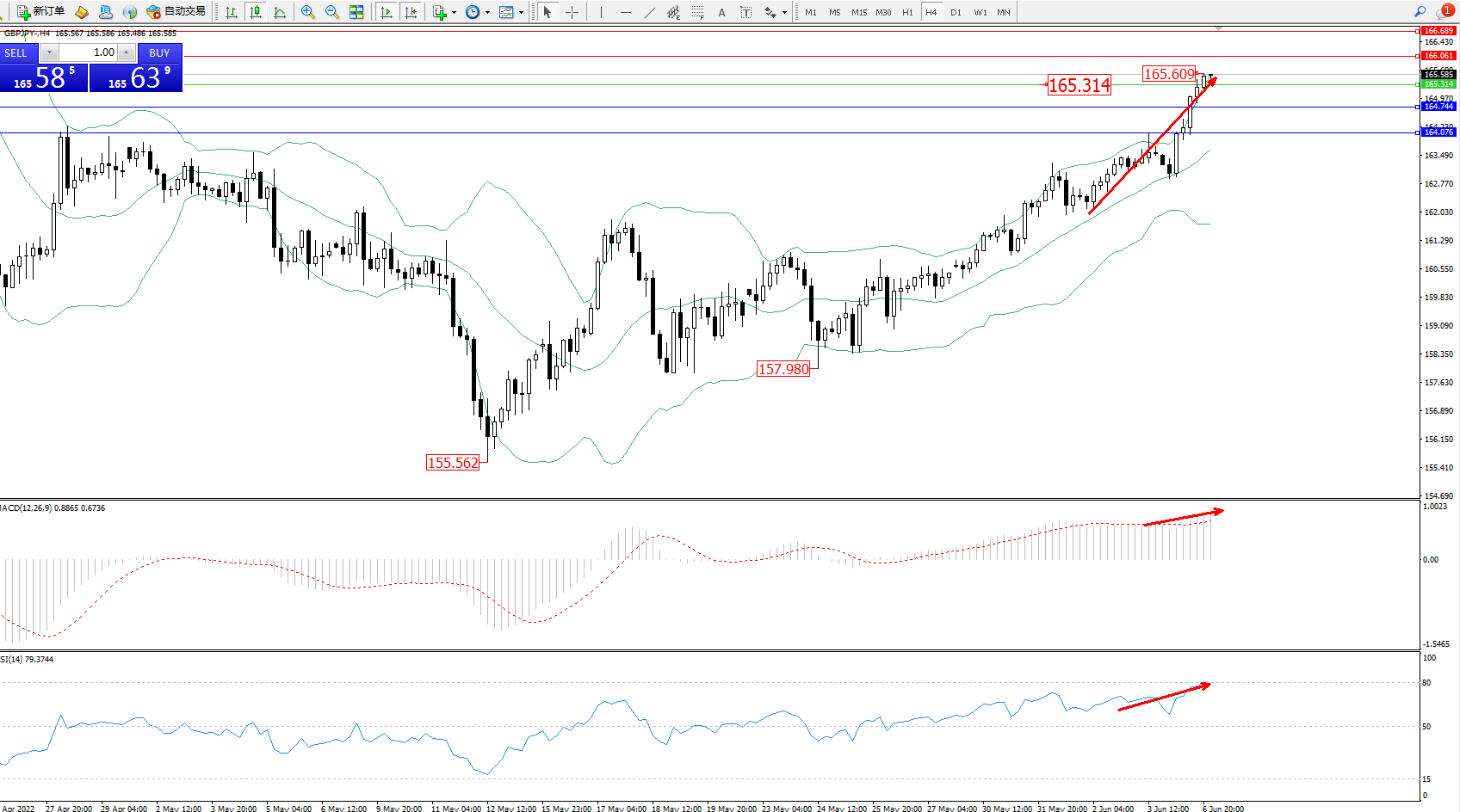 交易策略:165.314上方看涨,目标166.061、166.689