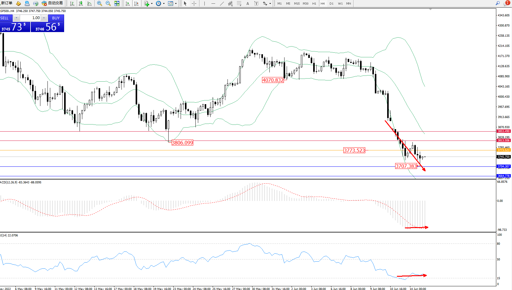 标普SP500——4小时K线图显示: