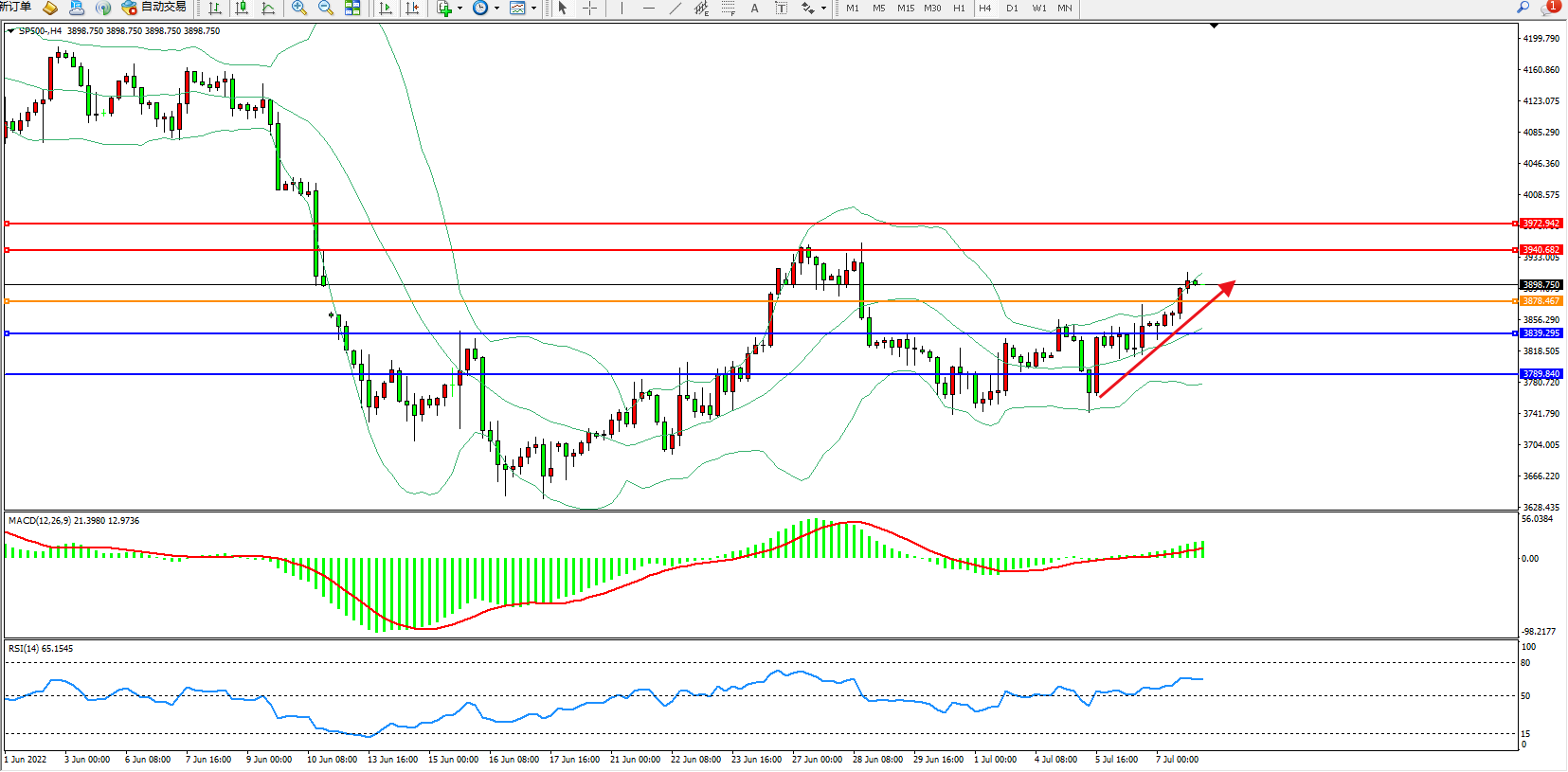 标普SP500——4小时K线图显示:
