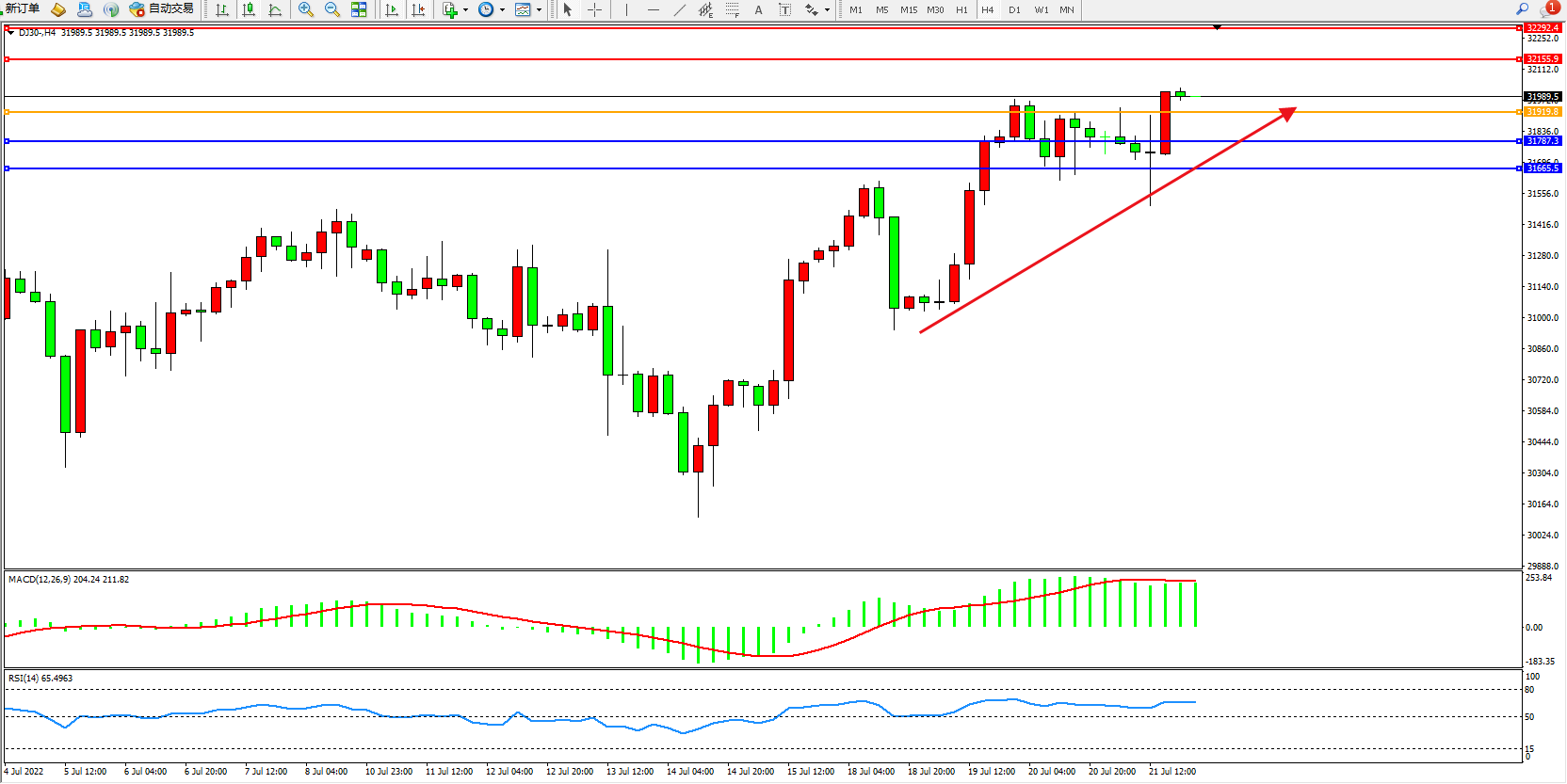 道琼斯指数7月21日(周四)收盘上涨161.93点,涨幅0.51%,报32036.77点;美国费城地区制造商对商业形势的展望本月下滑至1979年以来的最低水平,未来新订单和资本支出计划指标均恶化。