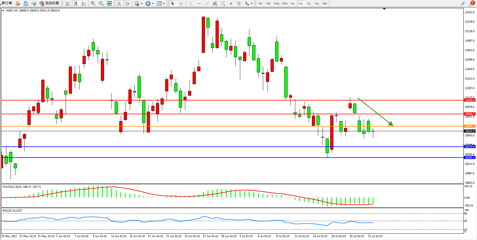 恒指HK50 4小时图