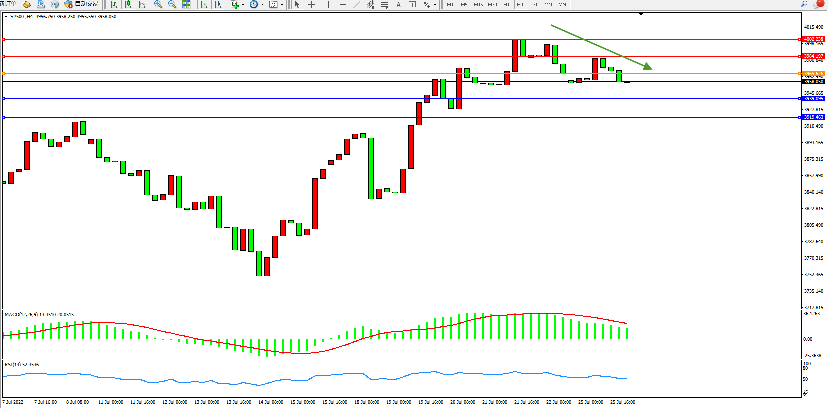 标普SP500——4小时K线图显示: