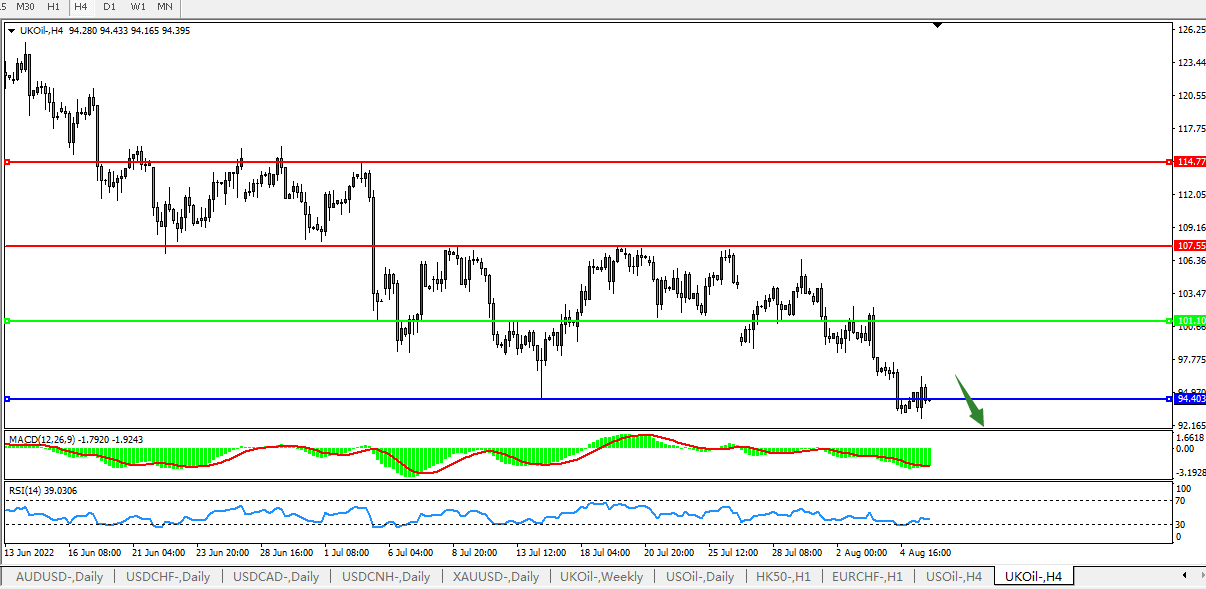 英国原油UKOIL   4小时图