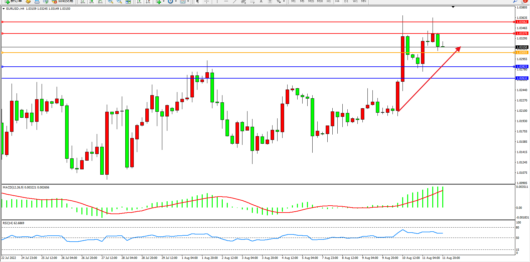 支撑位:1.02823、1.02632