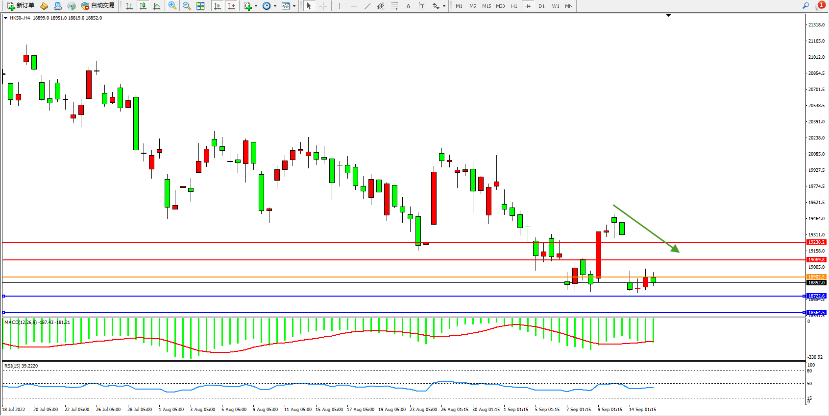 香港恒生指数9月15日(周四)收盘上涨83.28点,涨幅0.44%,报18930.38点;昨日大跌的港股三大指数集体反弹,恒指涨0.44%,依旧未能收复19000点,国指、恒生科技指数分别涨0.59%和0.25%,昨日三者均重挫超2%。大型科技股涨跌各异,大金融股(银行、保险、券商)上涨助力大市上扬,近日大跌的CRO板块反弹明显。