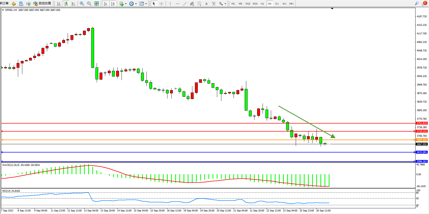 标普SP500——4小时K线图显示: