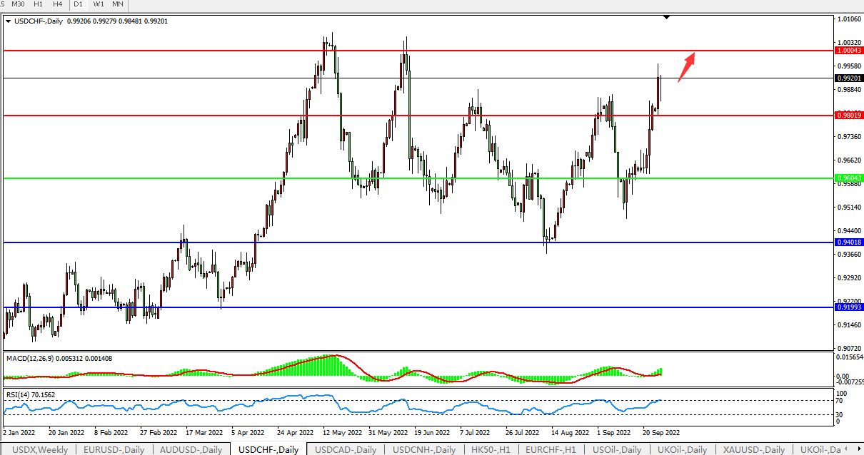 美元兑瑞郎USDCHF 日线图