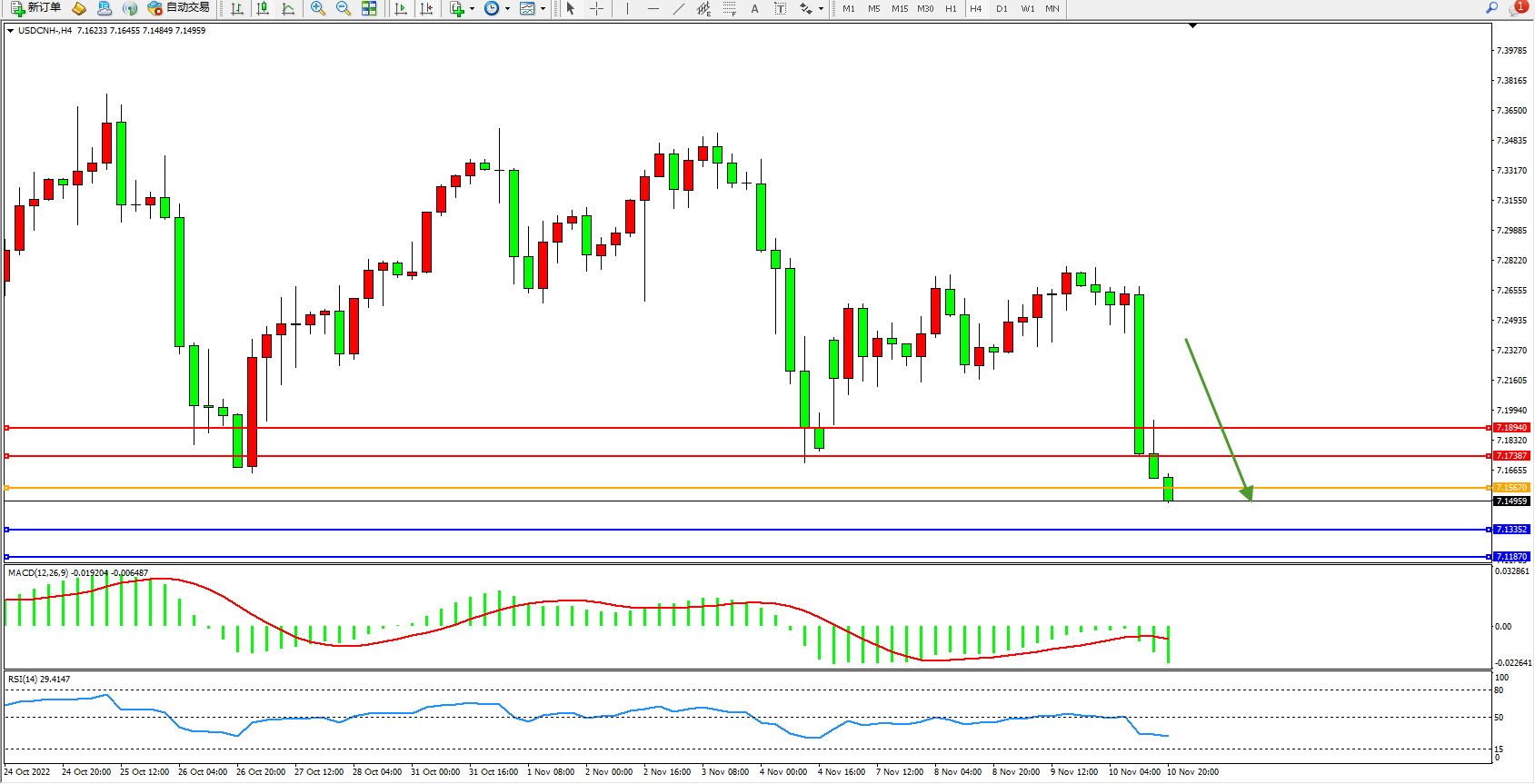 交易策略:7.15670下方看跌,目标7.13352、7.11870