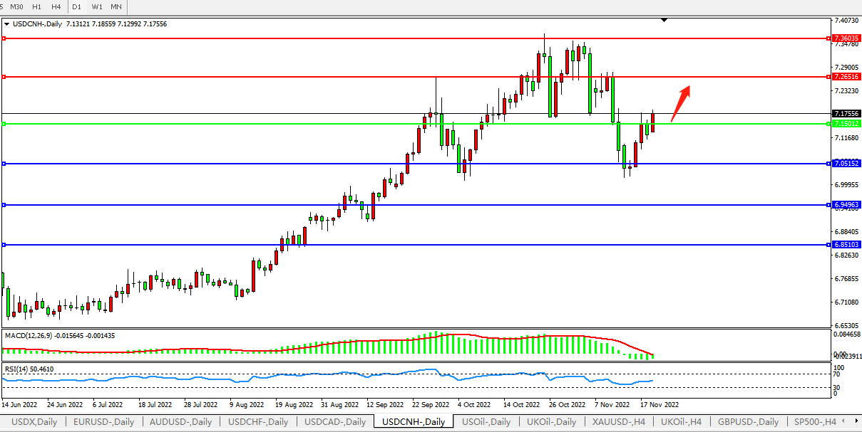 备选策略:在7.1500之上,看涨,目标价位为7.2600、7.3600